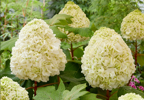 Компактная гортензия, 125 см в высоту. Цветы белые, очень плотно-набитые в соцветии. Листья дуболистной формы, зеленые, Осенью они переливаются широкой гаммой оттенков коричневого и красного, красиво гармонируя с яркими соцветиями. Оригинатор Тара Бивен (USA). Морозостойкость -25, в средней полосе зимует с укрытием. |