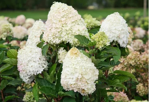 Цветки крупные, белые, окрашивается соцветие в розовые, затем ярко-розоао-малиновый цвет. Соцветие широкопирамидальное, плотное. Цветение в июле-сентябре. Крепкие побеги. Высота 100-120 см. |