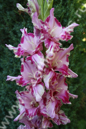 | Светло-сиреневый, с пурпурным пятном в белом обрамлении, такие же фрагменты пятна на верхних лепестках. Все кончики лепестков имеют остроконечную форму. Хорошо растет. | ||||