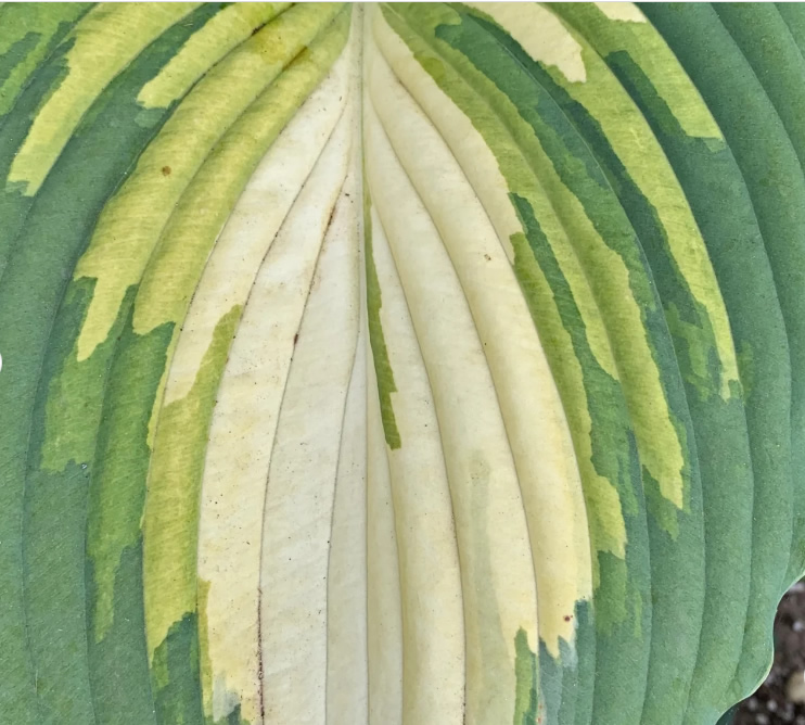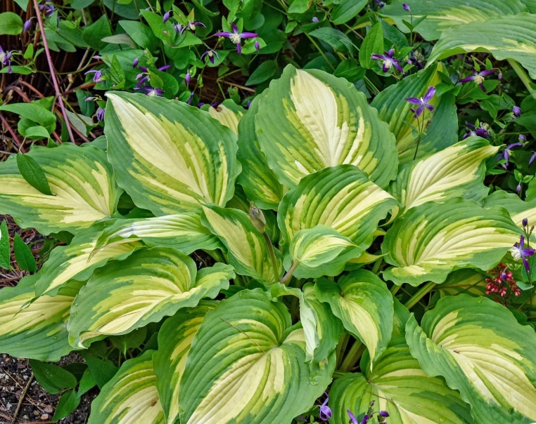 -H. Hansen Листья кремово-желтые с широкой синей каймой, сильно гофрированной. Это крупная хоста с почти белыми цветками, которая растет как в полутени, так и в полной тени. Высота от 45 до 50 см, рост средний. |