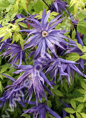 Сине-фиолетовый с махровыми/полумахровыми цветами диаметром 8 см.