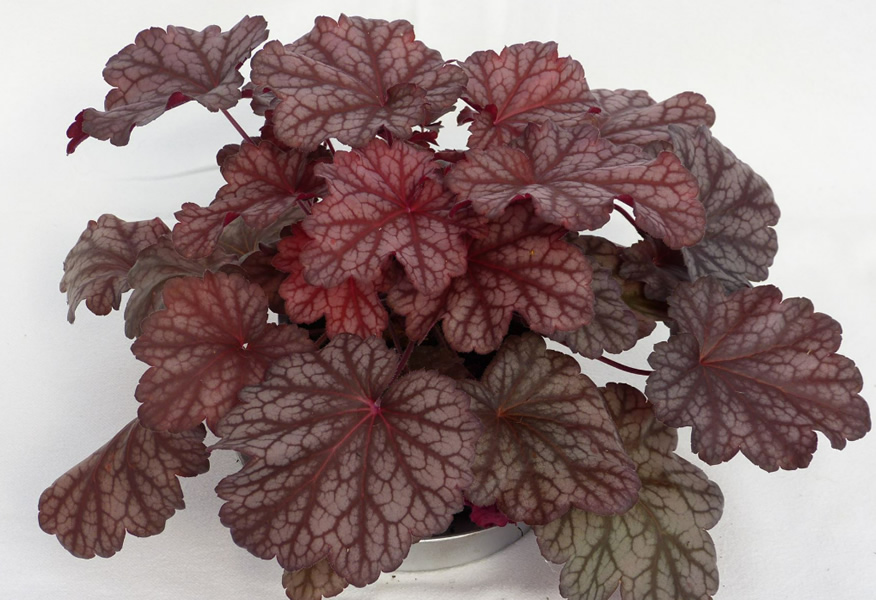 Красноватая, с медными тонами и серебристым налетом. Цветок розовый, высота растения 20 см.