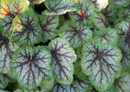 new Живописная новинка из Франции. Сорт из новой серии Великие художники ('The Master Painters'). Гейхера с необычной окраской листьев, достойной великого Пикассо. Причудливые узоры на листьях из оттенков зеленого лайма и цвета красного вина. Цветки мелкие розово-красные. Высота 20-25 см.