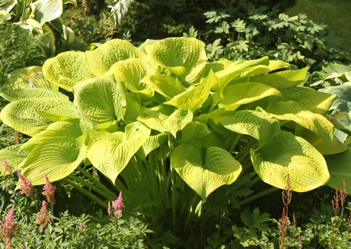 Крупные золотистые листья превосходной плотности. Гигантская хоста, которая выдерживает полное солнце. Высота 80-90 см, куст средний. |