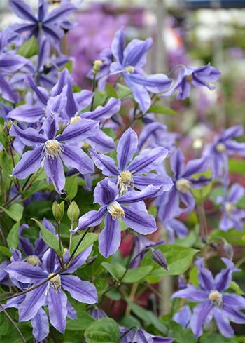 Фиолетово-синий со светлой каймой. Диаметр цветка 10-12 см. Высота до 1,5 м. Не цепляется самостоятельно за опору, поэтому может использоваться как почвопокровник, отсуда и название- Мистическая река. Группа обрезки 3-я. Новинка! |
