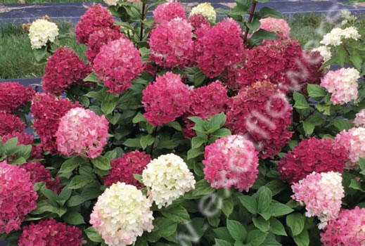 Соцветия белые, меняющие окраску на розово-малиновую и насыщенно-рубиновую в конце цветения. Крепкие, устойчивые побеги. Высота 80-90 см. |