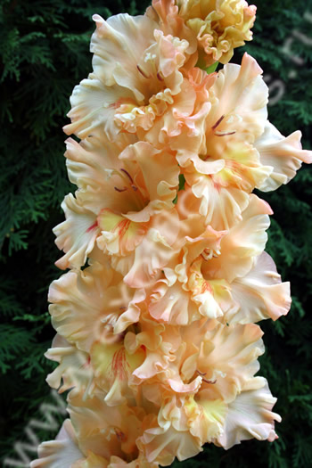 красным сетчатым рисунком. Хорошая гофрировка по цветку. Идеально двухрядное,