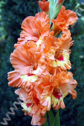 Красивейший оранжевый, на нижнем лепестке красное пятно в кремовом обрамлении.