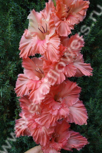 Чисто-розовый с потрясающей! бахромой, почти как у тюльпанов.