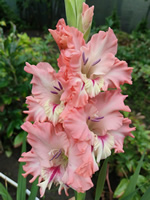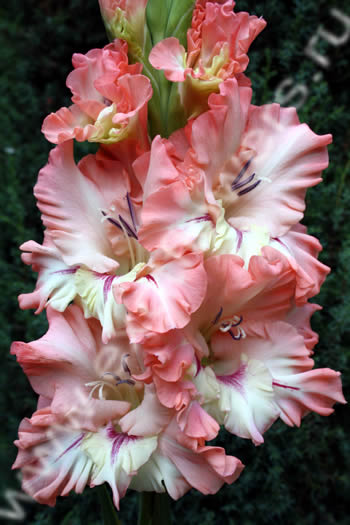 Розовый, с высветлением в горле, на нижних лепестках перистое пурпурное пятно на кремово-желтой подложке. Великолепная укладка колоса. Суперновинка.