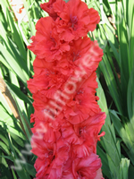 Ярко-красный. Мощнейшая гофрировка крупными складками и защипами, цветок смотрится как махровый. Плотные лепестки. Очень красивый.