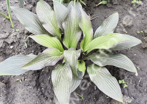 Длинные темно-зеленые листья с большими частями сезона с темно-красным румянцем на листьях. Лавандовые цветы. Высота 35-40 см. Тень/полутень. Лист намного "краснее", чем у First Blush. Скрещивание Tekila Sunrise х First Blush.