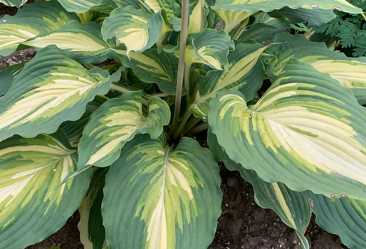 -H. Hansen Листья кремово-желтые с широкой синей каймой, сильно гофрированной. Это крупная хоста с почти белыми цветками, которая растет как в полутени, так и в полной тени. Высота от 45 до 50 см, рост средний. |
