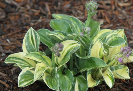 Листья сине-зелёные с нерегулярными кремово-жёлтыми прожилками. Хоста Mouse Tracks имеет полосатые или пятнистые листья и представляет собой небольшую хосту с лавандовыми цветками, которая растёт в полутени и полной тени. Высота растения составляет 15-20 см, рост средний. |