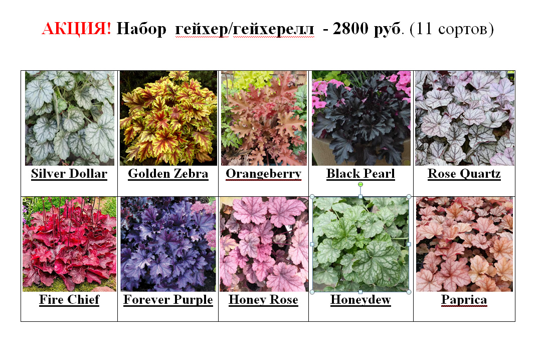 Набор можно составить самостоятельно, кроме сортов, которые помечены: