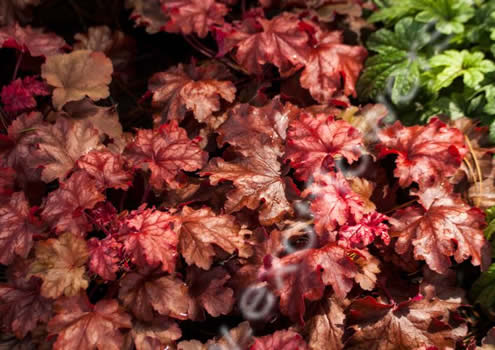 Красновато-коричневая, с серебристыми пятнами. Нетипично-разрезанный лист для гейхеры, как у гейхереллы. Высота 20-25 см. Местоположение полутень. |