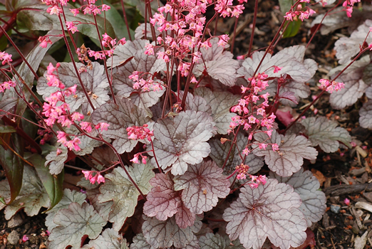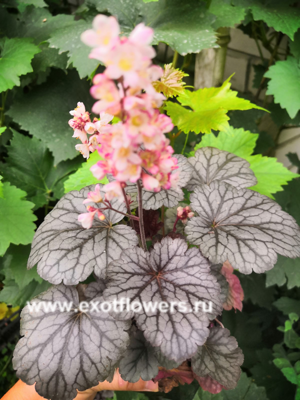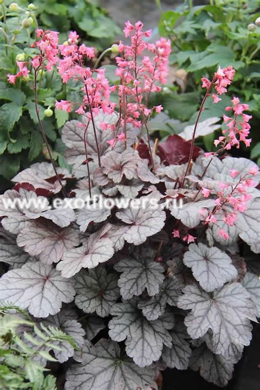 Небольшая листва серебристого оттенка с вишневыми прожилками, обратная сторона бордовая. Цветки насыщенно-розовой окраски превосходно смотрятся на фоне светлой листвы. Высота 30 см.