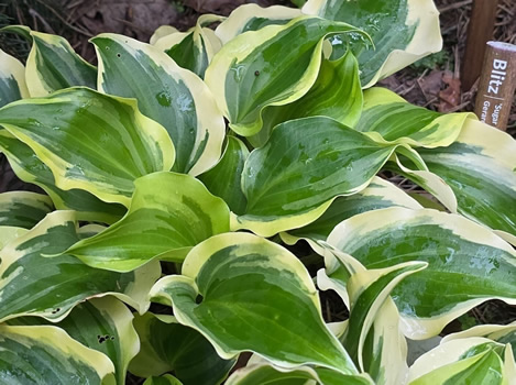 -G. Heemskerk. Листья очень плотные, блестящие, зелёные с широкой желтой каймой. Скорость роста средняя. Хоста высотой 35-40 см. Спорт хосты “Sugar and Spice ” |