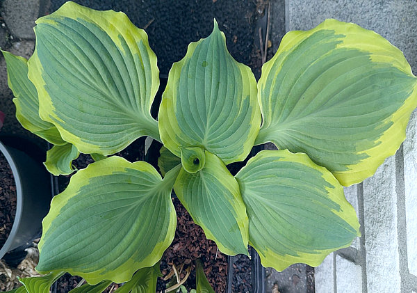-C.Brinkmann Крупный зелено-голубоватый лист с широкой желтой каймой. Высота 30-40 см. |