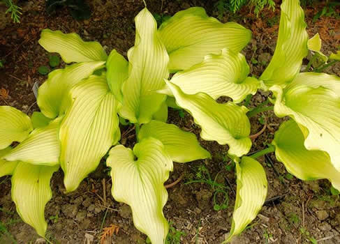 Листья шартрезовые, зеленые, переходящие в желтые, с узкой зеленой каймой. Крупная хоста с бледно-лавандовыми цветками, которая растет как в полутени, так и в полной тени. Высота от 60 до 65 см, рост средний. Cпорт от H.''Abba dabba Do'' |