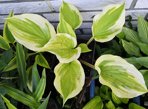 Салатно-зеленая с широкой белой каймой. Летом окраска переходит в желтый с белой каймой. Крапчатые, коричневые черешки. Высота 30 см. |