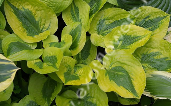 Листья толстые, шартрезово-жёлтые (в конце лета кремово-жёлтые) с нерегулярным тёмно-зелёным центром, не горят на солнце. У взрослых экземпляров листья сильно гофрированные. Среднего размера хоста высотой 35-40 см и шириной 70 см. Цветки бледно-лавандовые. Цветение в июне. Место Полутенистое/тенистое.