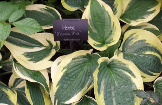 Листья темно-зеленые, с широкой белой перьевидной каймой. Цветы светло-лавандовые. Высота 40 см. Гибрид.