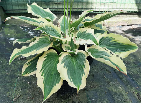 -B.Leuckx Это крупное растение с зелёной листвой с кремово-белой каймой. Листья очень волнистые и заострённые на кончике. Высота 50-60 см. |