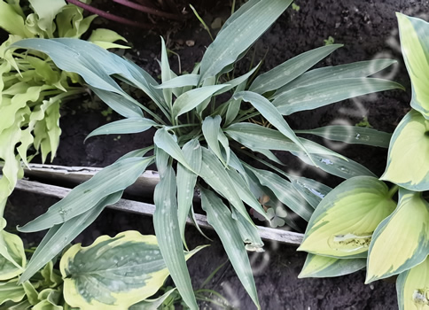Очень узкие скрученные сине-зеленые листья. Очень необычный сорт из Японии. Лавандовые цветы. Полутень/тень. Высота от 20 до 25 см, рост средний.