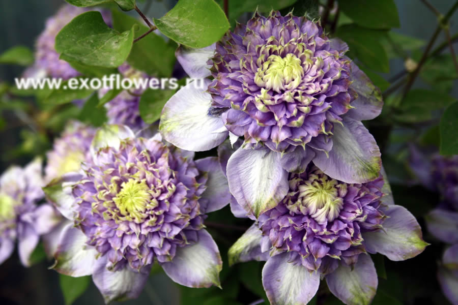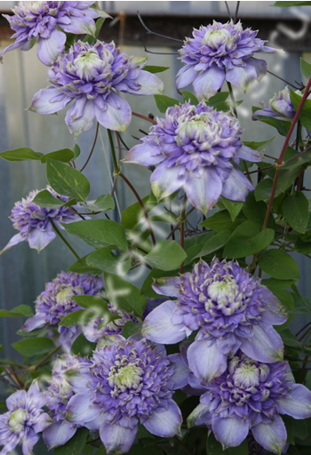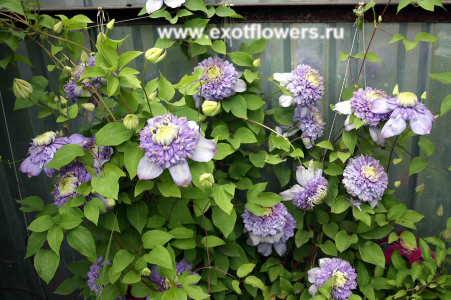 Исключительно красивый сорт с всегда махровыми голубыми цветами. Группа обрезки 2-ая. Высота около 2-х метров.