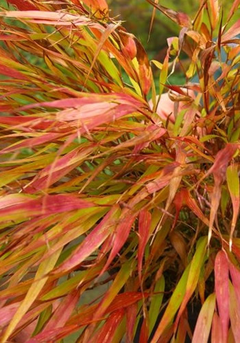 | Хаконехлоя Beni Kaze | Исключительно декоративный злак для полутенистых мест. Образует пышные, обильные куртины высотой и шириной 60 см из очень длинных свисающих зелёных листьев, которые осенью краснеют и живописно меняют цвет на оттенки коричневого и золотистого. Разрастается медленно, выбрасывая отростки, которые, обрастая в одном направлении, формируют интересный каскад. В конце лета чуть выше пучка травы появляются жёлто-зелёные цветки в поникающих рыхлых метёлках длиной до 15 см. Используется для декорирования склонов, выращивания в контейнере и для оформления более высоких растений. Незаменимое растение для японского садика. |